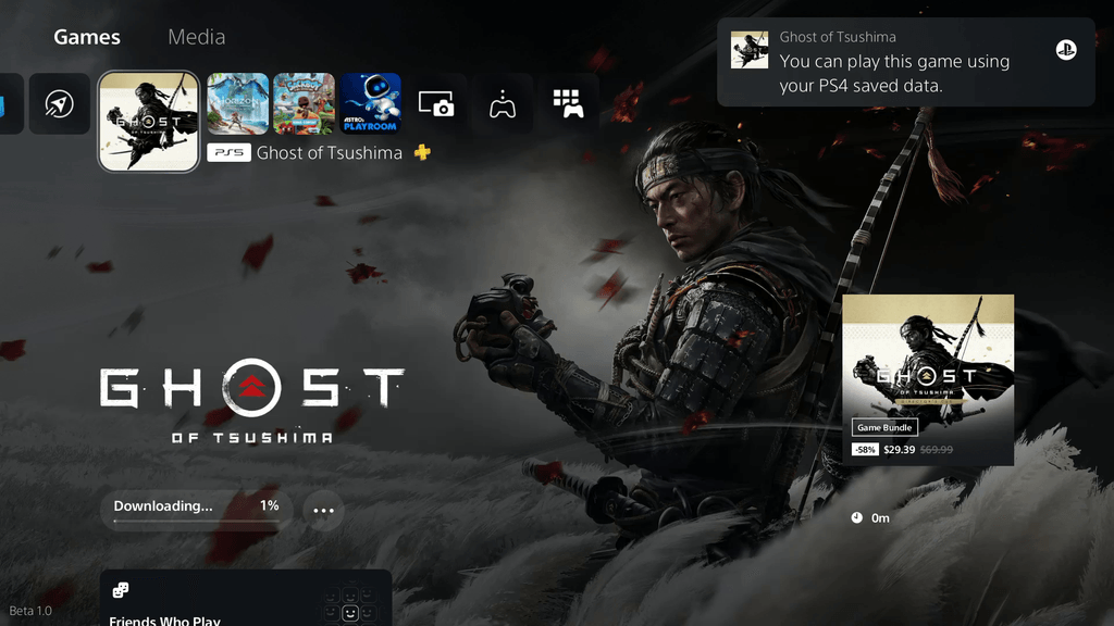 - Lorsque vous téléchargez ou installez un jeu PS5 compatible avec des données sauvegardées PS4, comme la version PS5 d’un jeu également sorti sur PS4, la même notification apparaîtra (si le jeu prend en charge cette fonctionnalité).