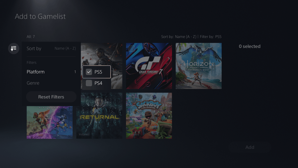 - Il est désormais possible de trier et filtrer les jeux lorsque vous en ajoutez à la liste.