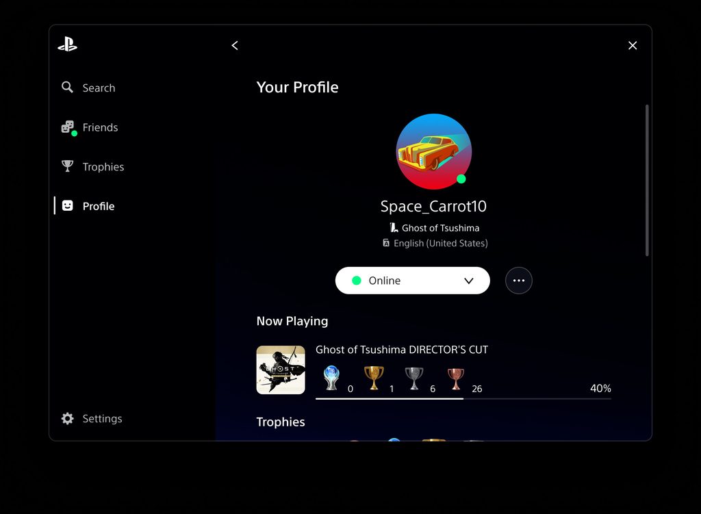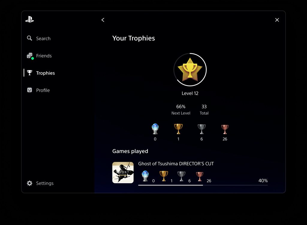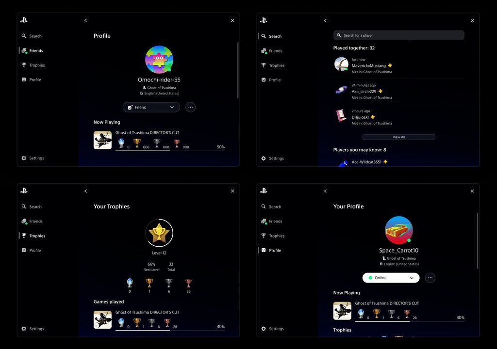 Ghost of Tsushima Director’s Cut est le tout premier titre PlayStation sur PC à utiliser une toute nouvelle interface PlayStation, qui inclut votre liste d’amis, vos trophées, vos paramètres et votre profil. Cette fonctionnalité est disponible sur les PC Windows et sera accessible via le menu en jeu ou, pour ceux jouant avec un clavier, en appuyant sur « SHIFT + F1 » sur votre clavier.