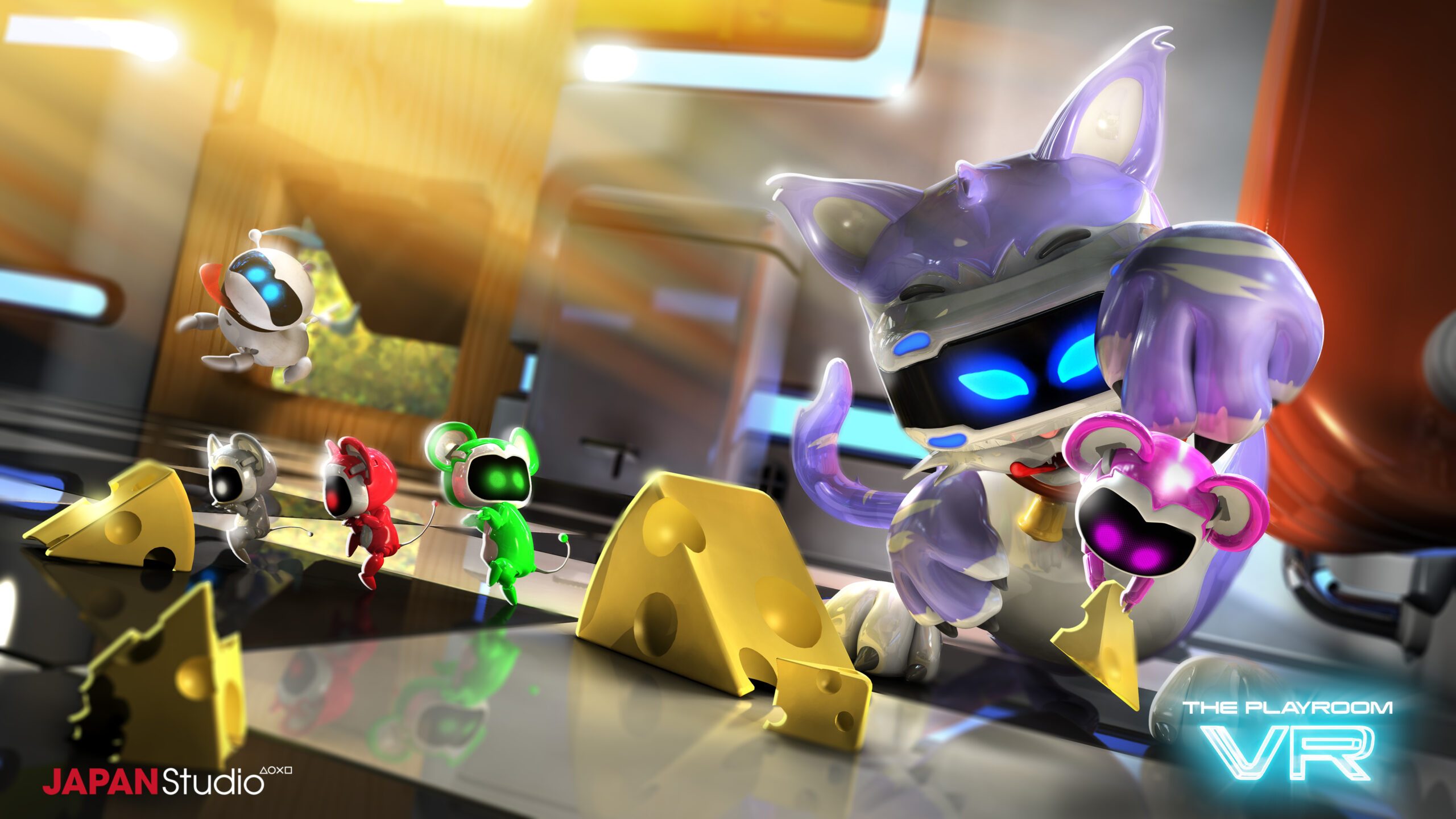 « Nous avons travaillé avec des artistes pour donner vie à ces personnages, mais nous n’avions que cinq mois pour implémenter la démo dans The Playroom. Afin de leur donner cette apparence empreinte de science-fiction en aussi peu de temps, nous avons décidé de nous inspirer des robots de Sony. Il était également très important qu’ils soient mignons, alors nous leur avons donné de grands yeux adorables et une démarche d’enfant. C’est ainsi qu’ils sont devenus des sortes de bébés robots. »